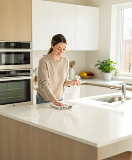 mains préparant des aliments sur un plan de travail en cuisine avec lumière naturelle